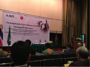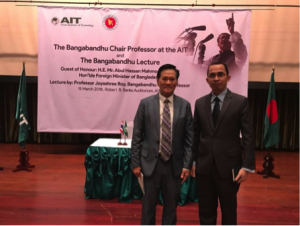 Atase Pendidikan dan Kebudayaan KBRI Bangkok menghadiri undangan dari Kedutaan Bangladesh dalam acara The Inauguration of The Bangabandhu Chair Professorship and Doctoral Fellowship yang diselenggarakan di Asian Institute of Technology (AIT) pada tanggal 15 Maret 2018. Acara itu dihadiri oleh sejumlah duta besar dan pejabat kedutaan berbagai negara. Turut hadir dalam acara tersebut, ketua sekaligus Dewan Pengawas AIT Dr. Subin Pinkayan, Menteri Energi dan Sumber Daya Mineral Bangladesh Nasrul Hamid, M.P, Menteri Luar Negeri Bangladesh Abul Hassan Mahmoud Ali, M.P, dan Duta Besar Bangladesh untuk Thailand Saida Muna Tasneem.